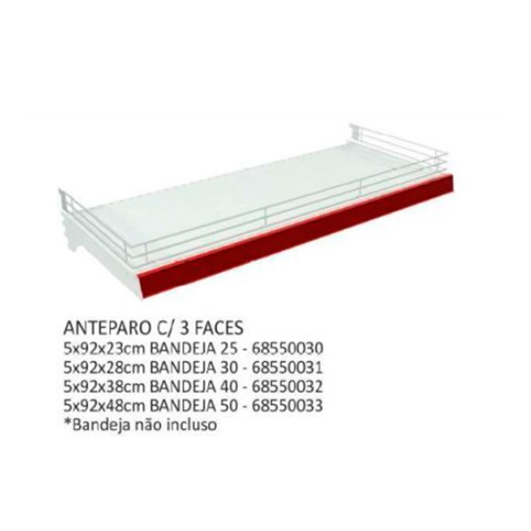 Anteparo aramado com 3 faces ao redor da borda da bandeja para fornecer uma proteção adicional aos itens contidos nela
