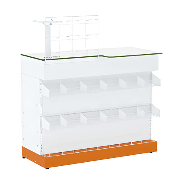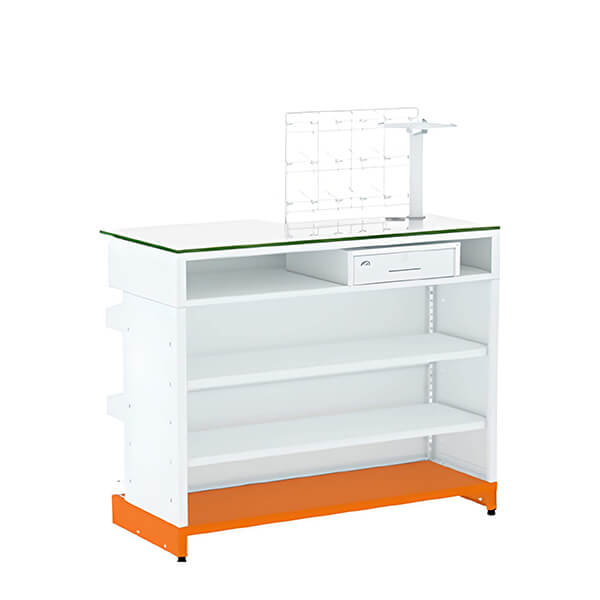 Alinha conforto para o usuário a uma exposição eficiente de produtos, visando a melhor experiência para cliente e vendedor, desenvolvido para resistir aos mais variados cenários, acompanha em sua estrutural frontal 2 cestos com 5 divisores cada, 1 anteparo na base, porta monitor e grade expositora para encartelados com 18 gancheiras. Possui 3 bandejas de aço na parte interna e gaveta inclusa sem porta dinheiro.