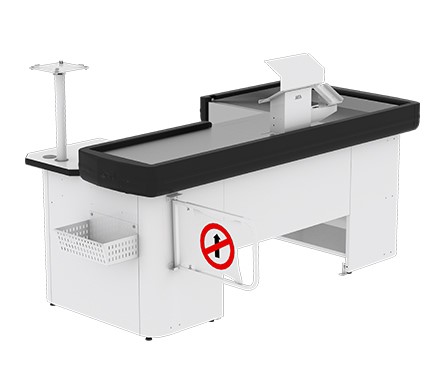 Possui design moderno e atende à norma ergonômica NR17. Sua pista inclinada facilita a movimentação de muitos itens. Incluí cancela, cesto para descarte, gaveta multiuso e kit automação, composto por suporte para teclado e para monitor. Tem preparação para balança compatível com Toledo 8217. Não estão inclusos a balança e o porta dinheiro.