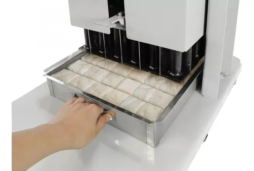 Para otimizar e padronizar a produção, a divisora de pão DPM.36 divide a massa 36 em partes iguais. Possui bandeja quadrada em aço inox. Ideal para uso em bancadas.