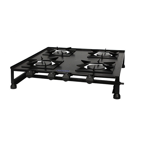 Fogão de mesa com 04 bocas para uso profissional. Possui mesa e estrutura em aço carbono com revestimento em tinta alta temperatura. Com grade de apoio 30×30 cm desmontável, facilitando a limpeza.