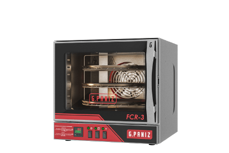 Forno elétrico compacto, para uso em bancada, com assamento rápido e uniforme, propiciado pelo sistema rotativo aliado à convecção (turbo).