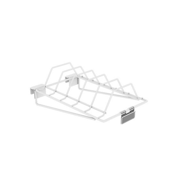 Acessório desenvolvido para expor e armazenar pratos. Dá suporte para que os utensílios fiquem na posição vertical de forma segura, prática e atraente. Ideal para lojas de utilidades, home centers e supermercados.