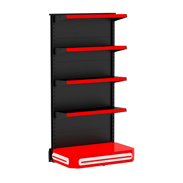 Ideal para lojas de médio e grande porte, prática e fácil de montar, com sistema de encaixe sem utilização de parafusos, bandejas reguláveis a cada 4,5cm, pés com regulagem de altura, colunas duplas e tratamento especial da superfície.