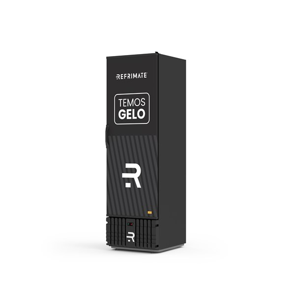 Gabinete externo (frente e laterais) em aço galvanizado pintado, com opcional de adesivo personalizado